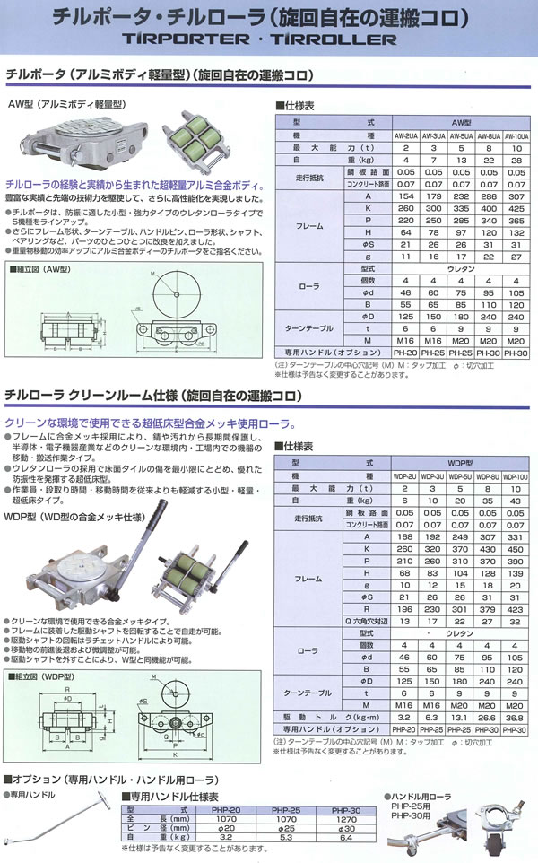 ●AW型TIRROLLER搬運(yùn)小坦克采用輕量設(shè)計(jì),鋁合金鑄造,搬運(yùn)重物的效率更好。