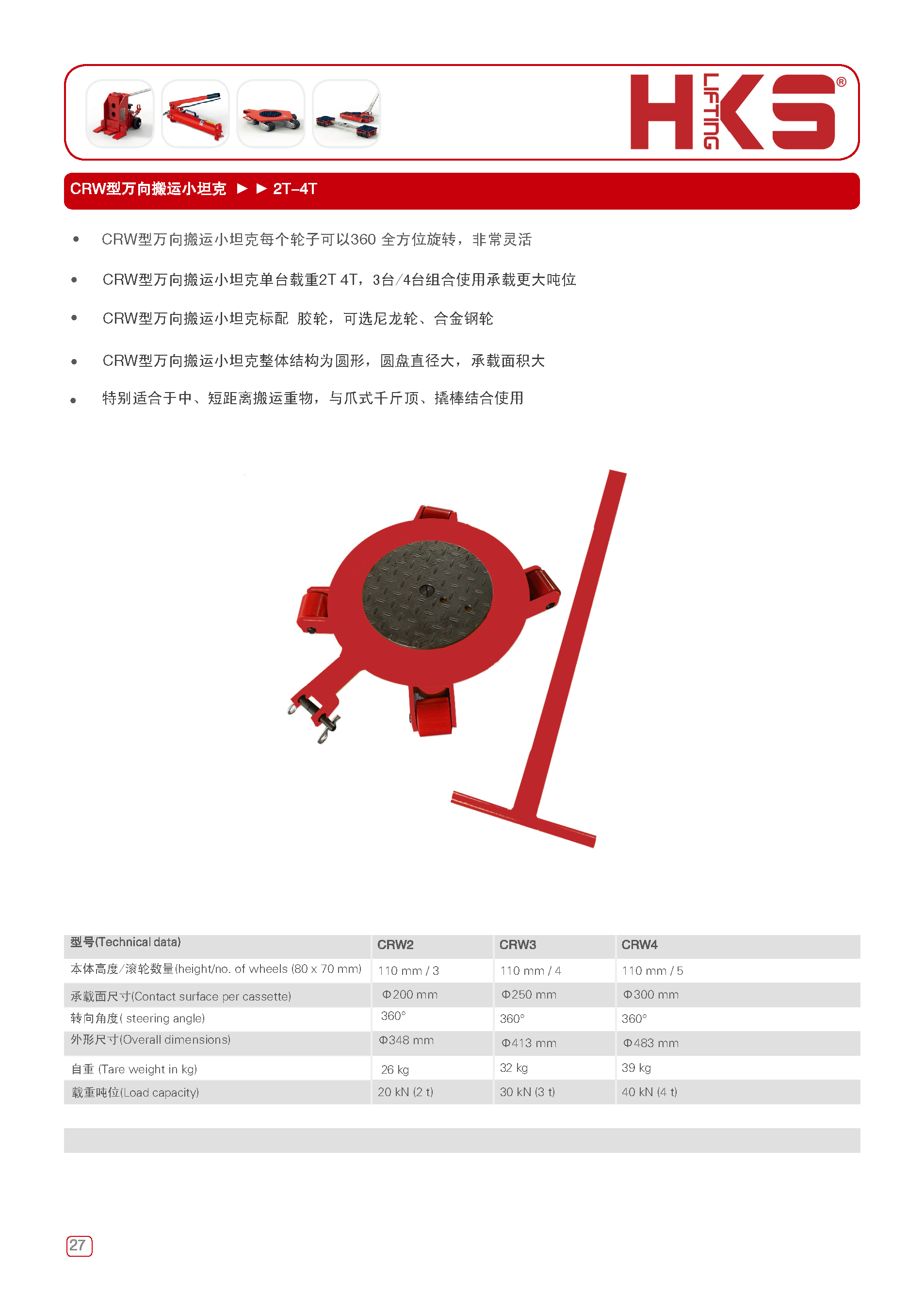 HKS-LIFTING艾馳楷時(shí)品牌是一家致力于機(jī)械行業(yè)專用設(shè)備設(shè)計(jì)、開發(fā)液壓工具的公司。HKS-LIFTING品牌【搬運(yùn)小坦克、爪式千斤頂】是一套完成頂升、搬運(yùn)工作的成套設(shè)備。產(chǎn)品主要廣泛應(yīng)用在鋼鐵、電力、化工、船舶、機(jī)械制造等行業(yè)。