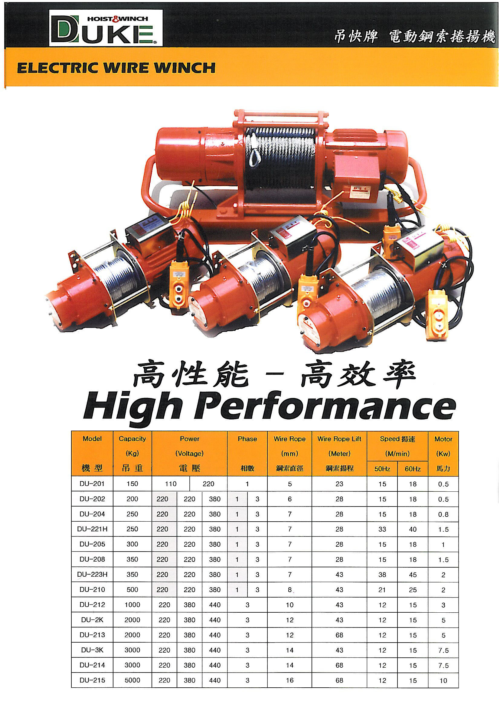 【馬達(dá)系統(tǒng)】DU-205迷你卷揚機(jī)選用工業(yè)級高效率鼠籠式感應(yīng)馬達(dá),工作效率高;