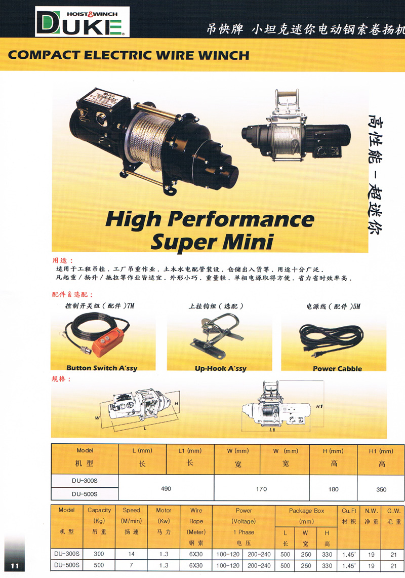 DU-300S 500S鋼索電動(dòng)卷揚(yáng)機(jī)產(chǎn)品介紹:DU-300S 500S多功能卷揚(yáng)機(jī)