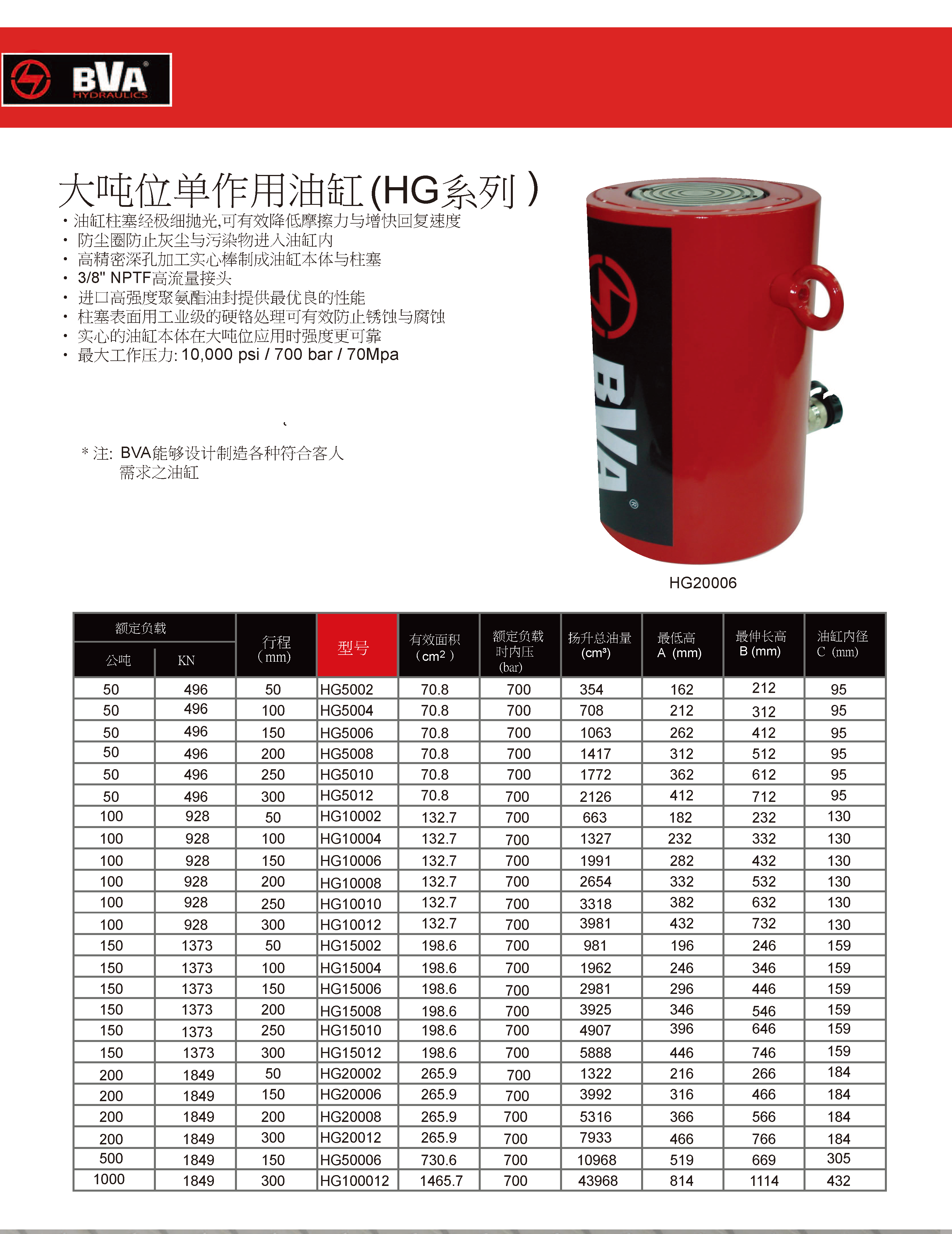 臺灣BVA大噸位單作用油缸(HG系列)HG5006 HG10006