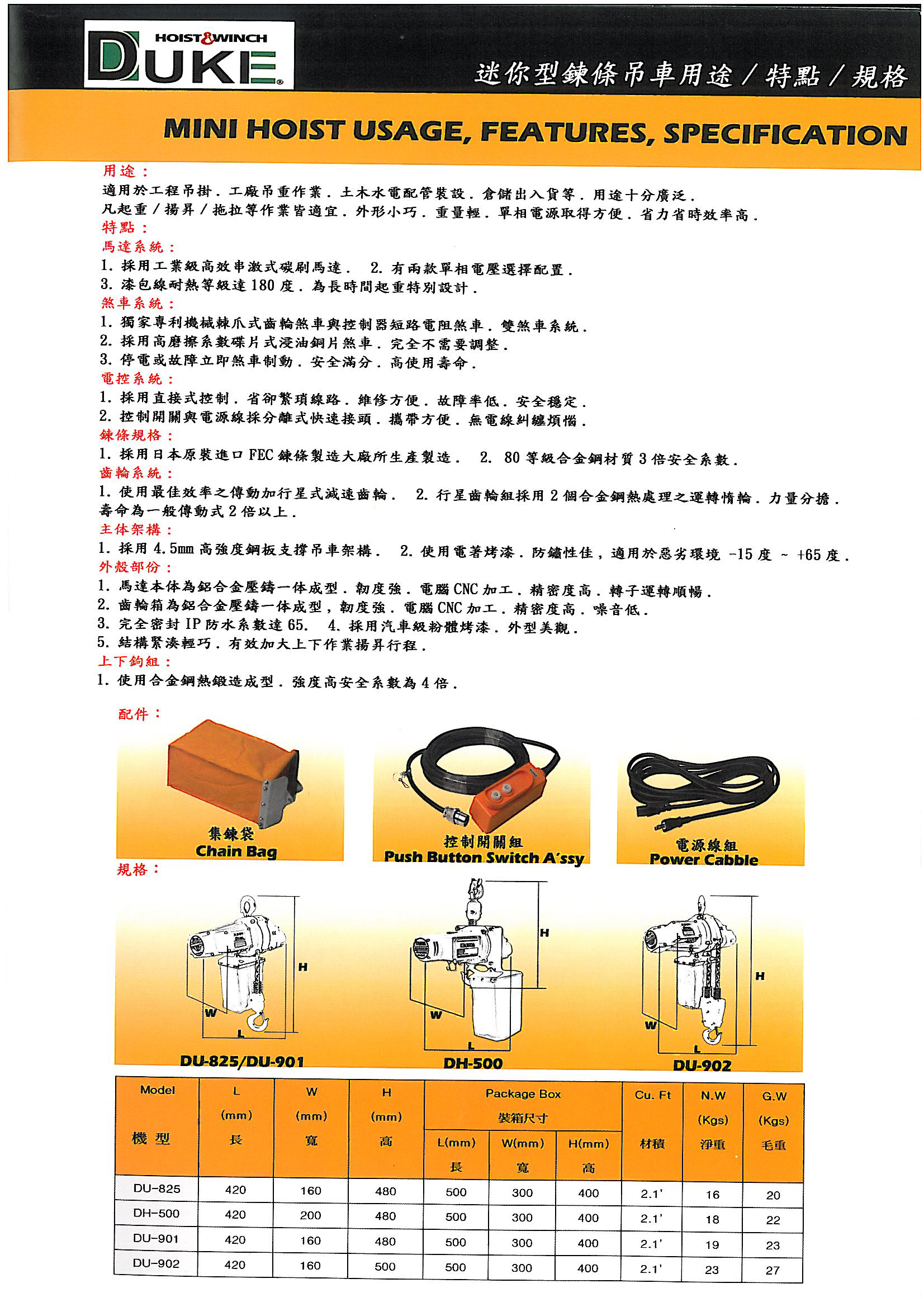 【產(chǎn)品名稱】DU-901迷你型電動(dòng)葫蘆
