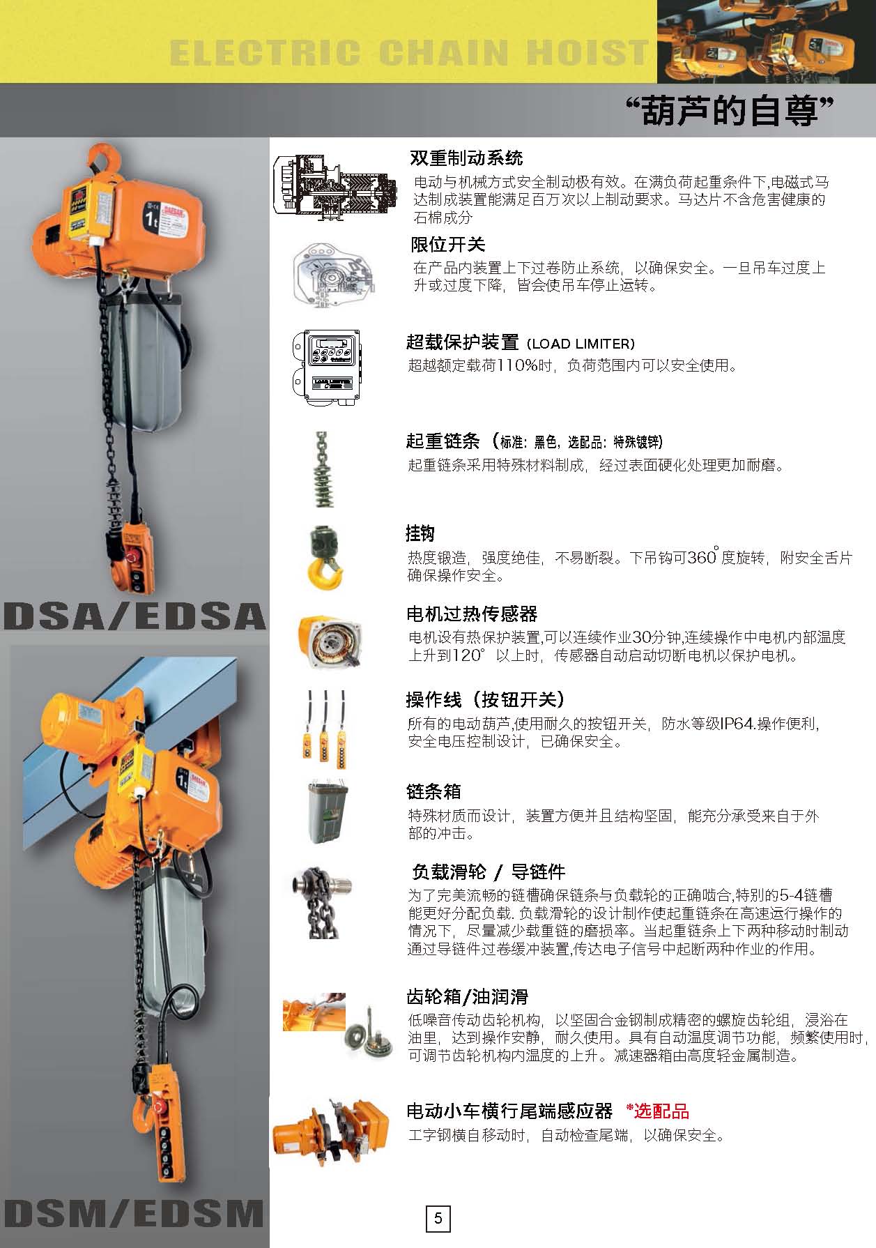 韓國DAESAN大山EDSM雙速變頻環(huán)鏈電動葫蘆結(jié)構(gòu)特點: