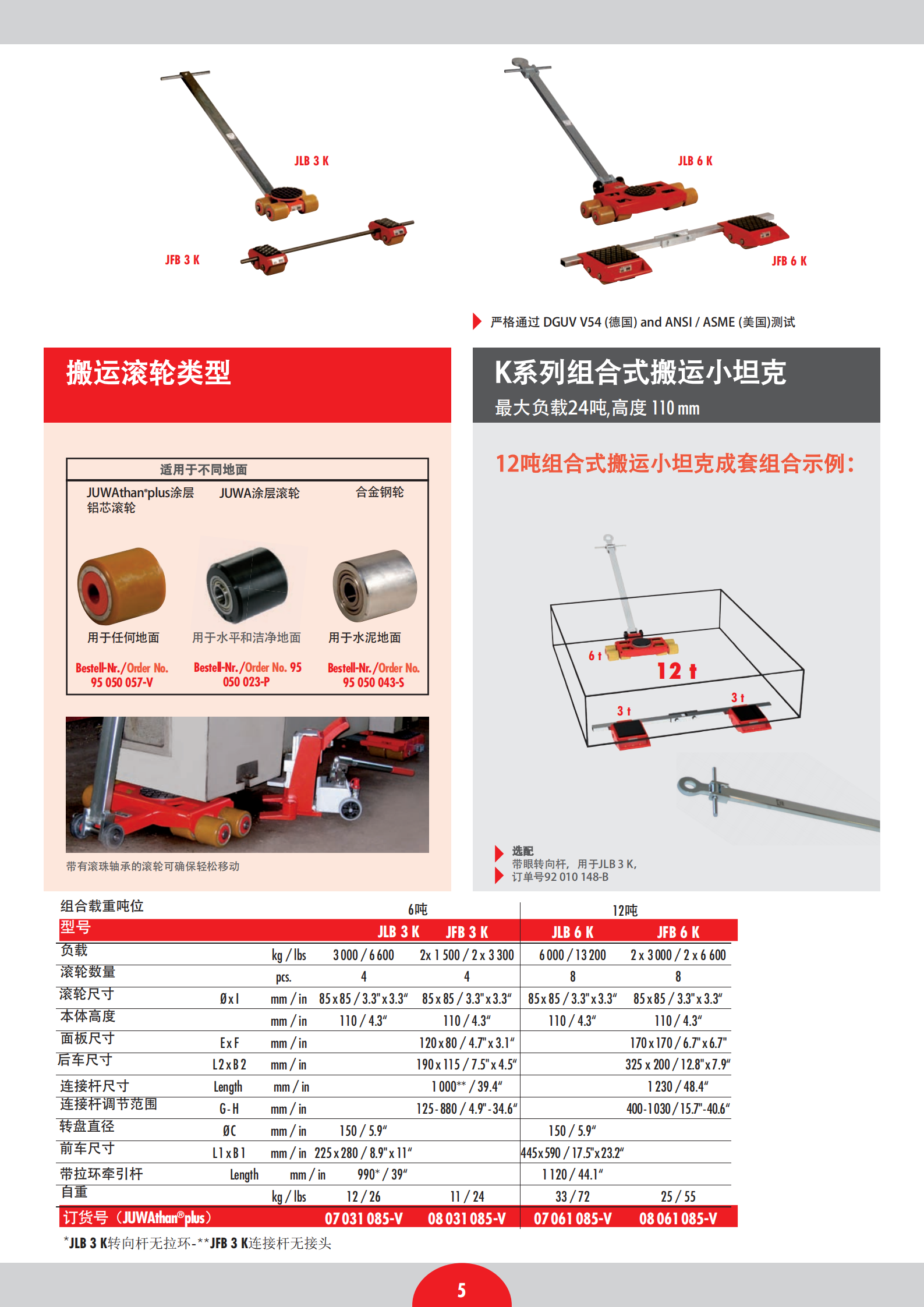 【產(chǎn)品規(guī)格】JLB3K JFB3K德國JUNG組合式搬運(yùn)小坦克,載荷6噸
